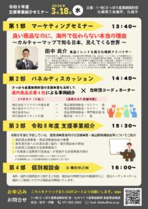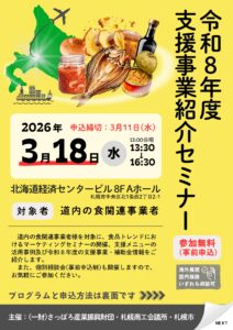 (一財)さっぽろ産業振興財団では、道内の食関連事業者の皆さまを対象に、食品トレンドをテーマとしたマーケティングセミナーを開催します。